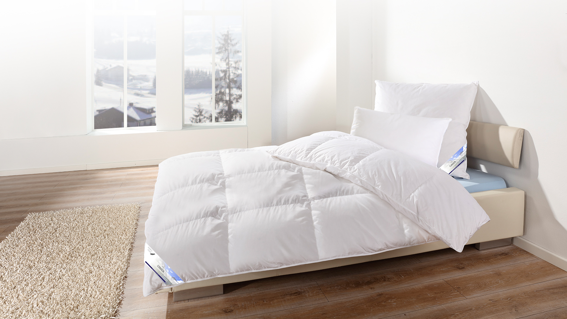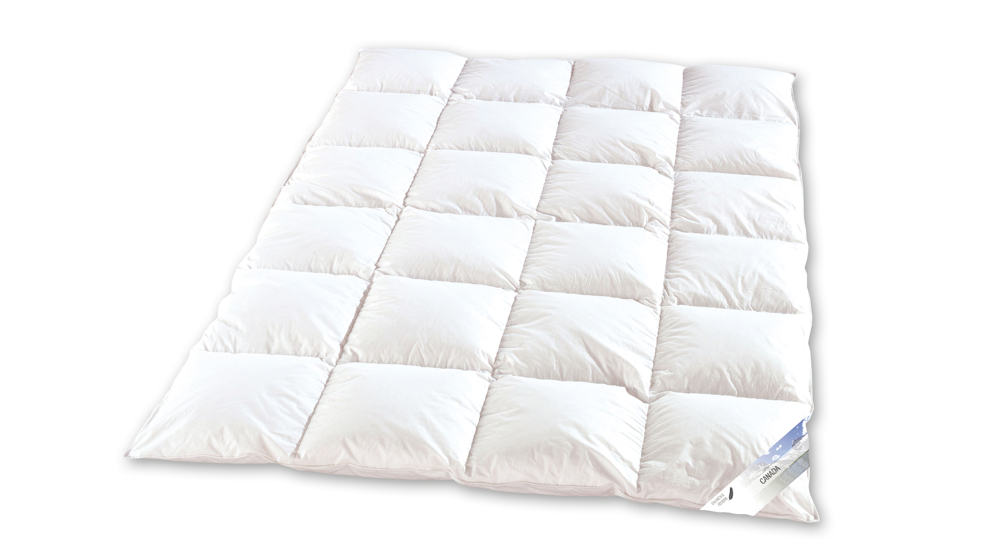 Kassettendecke in 135x200cm aus unserer Canada Serie. Bei eiskalten Temperaturen Wärme spenden. Der höhere Daunenanteil bietet eine gute Wärmespeicherung bei gleichzeitig niedrigerem Gewicht. Aus rein natürlichen Materialien, zertifiziert und Made in Germany.