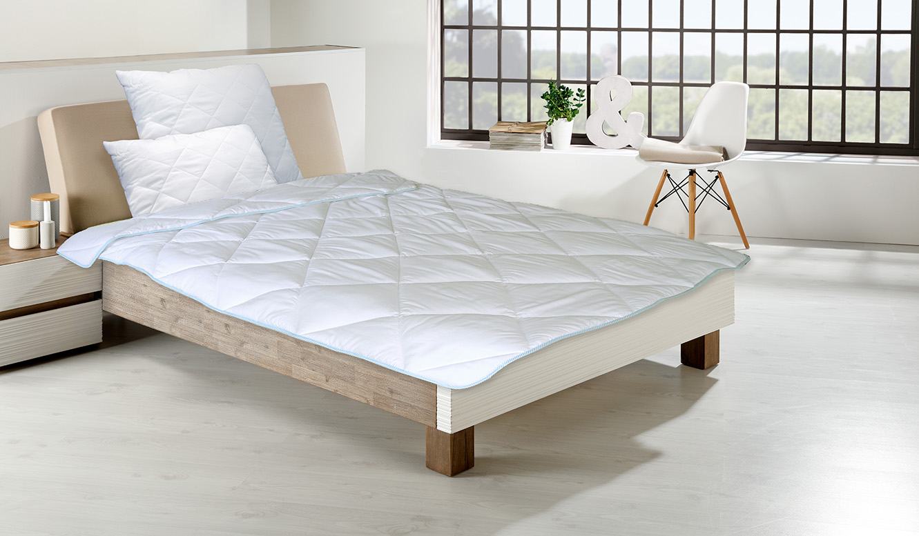 Dieses Oberbett sorgt für Abkühlung im Sommer und ein gleichbleibend warmes Körperklima im Winter.